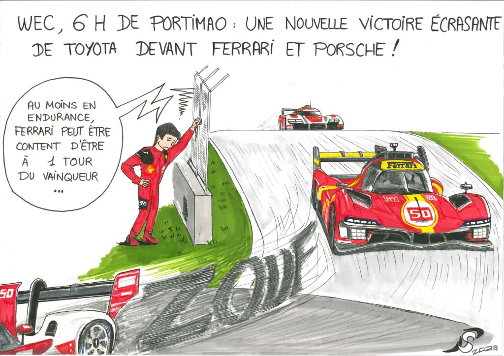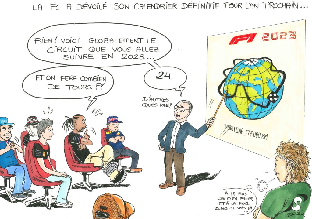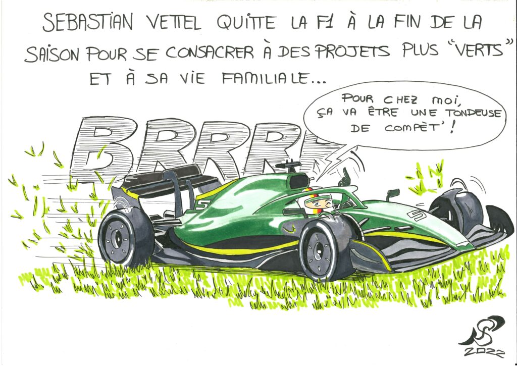En plus des planches, je traite certaines actus du sport auto en un dessin unique humoristique.